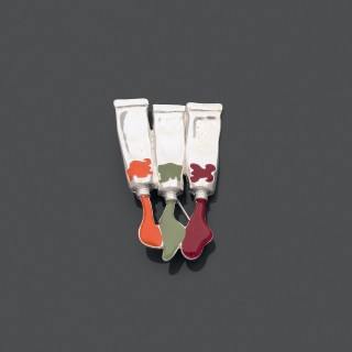 ARMAN (1928-2005) Broche "Tubes de peinture" en aluminium émaillé