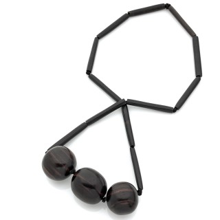 Christophe BURGER (né en 1950) Collier en laiton patiné et doré à l'or fin, papier Japon, corde nylon, métal, câble inox, gaine ther...
