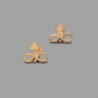 Hedva SER (née en 1948) Paire de pendants d'oreilles en métal martelé, doré, émaillé.