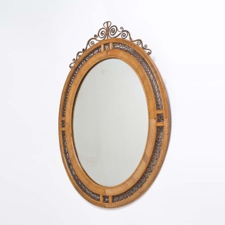Secrétaire à gradin en acajou et filets de laitonouvrant à deux vantaux en miroir, trois tiroirs