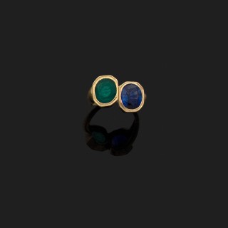 Bague en or jaune 18 k (750°/oo) ornée de trois opales de forme ...