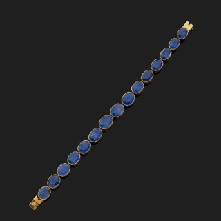 CERBARABracelet articulé en or jaune 18 k (750°/oo), les maillons en chute gravés d'agrafes et de fleurs, retenant au centre un camé...