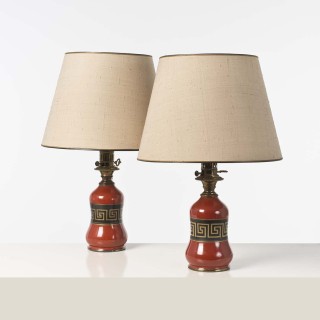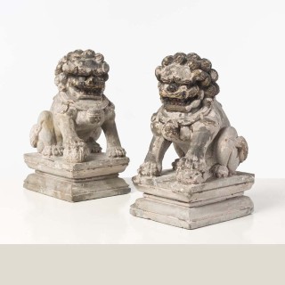 CHINE - XXe siècle Couple de chimères en grès à traces de po ...