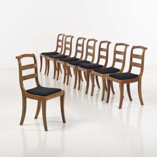 Suite de six chaises en bois mouluré et peint, les dossiers plat ...
