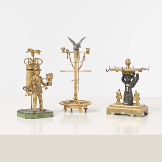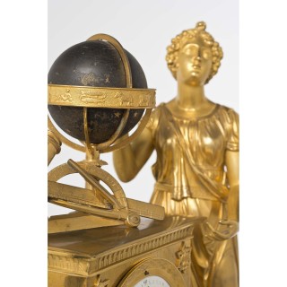Pendule à uranie en bronze doré, le cadran surmonté d’une sphère et flnqué d’une lunette, à décor d’une scène d’instruction ; le cad...