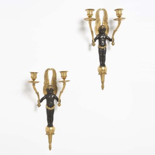 Paire d’appliques aux enfants en bronze patiné et doré, à deux ...