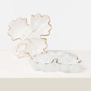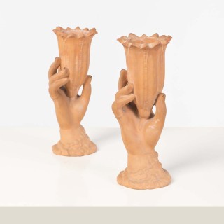 Deux vases de feuillages et fleurs en bois patinéet doré.