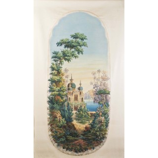 Pendule en forme de cathédrale en bronze patiné et doré, à déc ...
