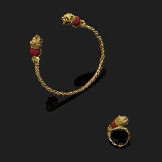 Bague en or jaune 18 k (750°/oo) à décor de serpents entrelacés, ...