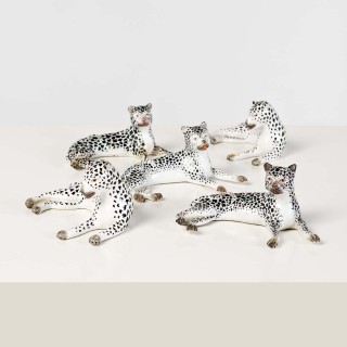 Nécessaire de cheminée composé d’une pairede chenets aux lévriers couchés en laiton poli ;