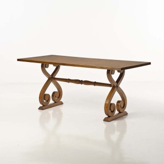 Table console en noyer teinté de forme demi lune, la ceinture ou ...