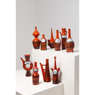Roger Capron (1922-2006) Suite de neuf bouteilles et une gourde annulaire à décor 'Compo'