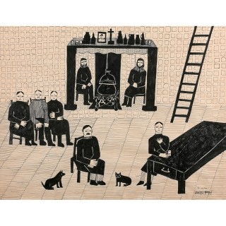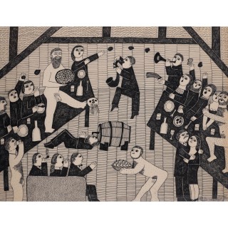 ƒ Veronique Filozof (1904-1977) Fête du Rougevin à l'atelier, 1960