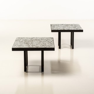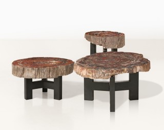 Ado Châle (né en 1928) Tables basses Bois pétrifié et métal ...