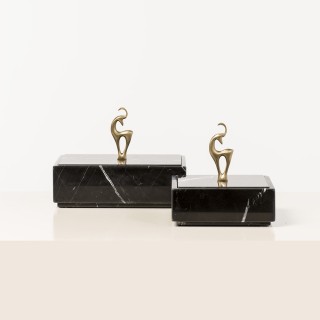 Two is company Elaphos Paire de boites Marbre, bronze et t ...
