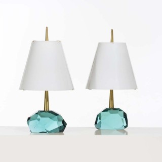 Roberto Giulio Rida (né en 1946) Paire de lampes Cristal de ...
