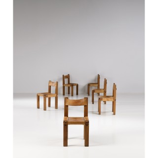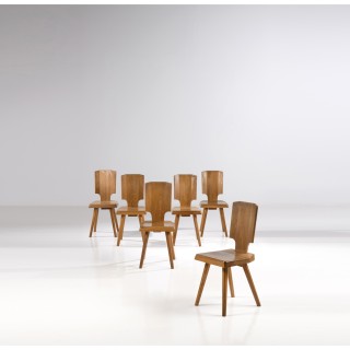 Pierre Chapo (1927-1987) Suite de six chaises modèle S11X