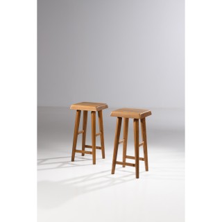 Pierre Chapo (1927-1987) Paire de tabourets modèle S01S