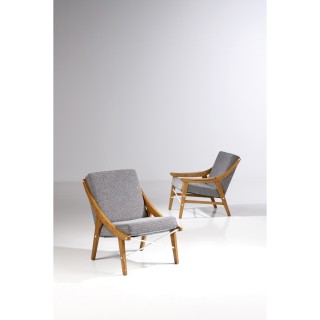 René-Jean Caillette (1919-2004) Paire de chauffeuses dites 'Madame' et 'Monsieur'
