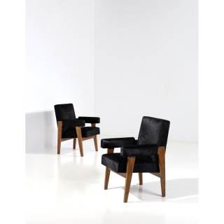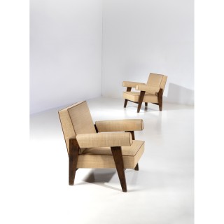 Pierre Jeanneret (1896-1967) Paire de fauteuils type PJ-SI-19-A