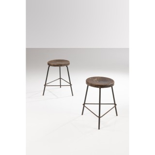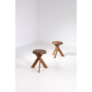 Pierre Chapo (1927-1987) Paire de tabourets modèle S31