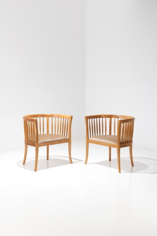 Paire de fauteuils modèle F560 dit 'Mushroom' et deux ottomans