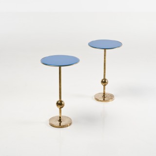Fontana Arte Paire de guéridons Bronze doré et verre Editi ...