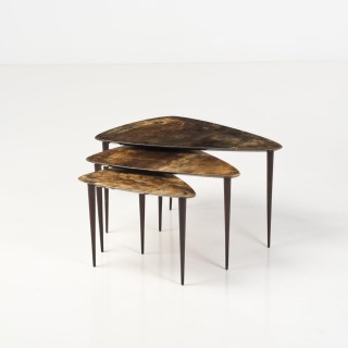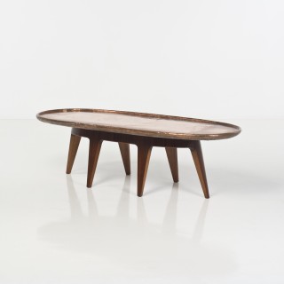 Travail italien Table basse Bois et cuivre martelé Date de ...
