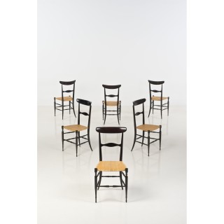 Chiavari Campanino Suite de six chaises Bois laqué et cann ...