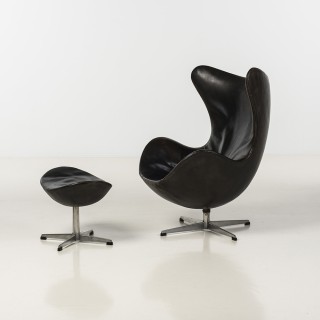 Arne Jacobsen (1902-1971) Egg Fauteuil et repose pied Cuir ...