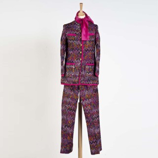 CHANEL. Tailleur jupe en lainage à vagues multicolores.