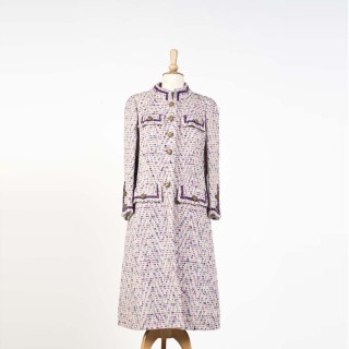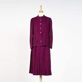 CHANEL. Manteau et jupe assortie en lainage dans les tons violet ...