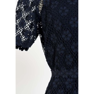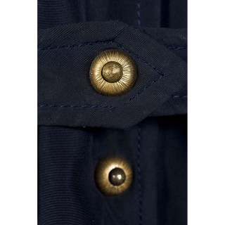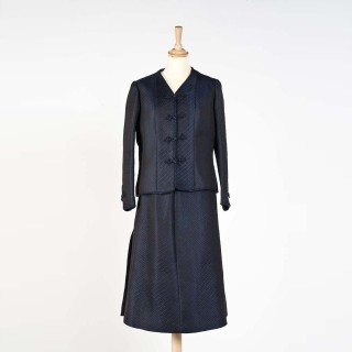 CHANEL. Tailleur jupe bleu marine, boutons passementerie.