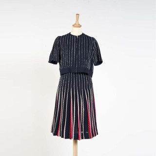 CHANEL. Ensemble jupe plissée et petit blouson à manches courtes ...
