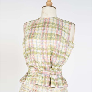 CHANEL. Tailleur jupe en lainage rubans roses et jaunes et lurex ...