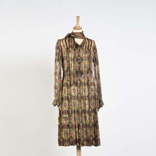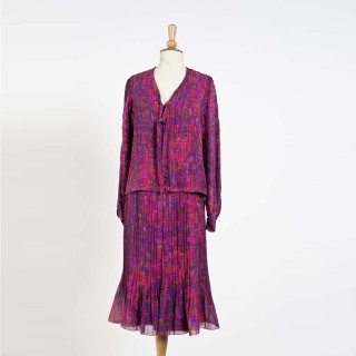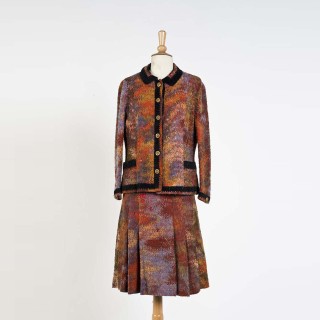 CHANEL. Ensemble jupe plissée et sa veste en soie dans les tons ...