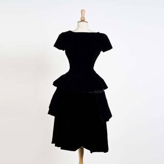 CHANEL. Ensemble corsage, jupe et veste en velours (en l'état).