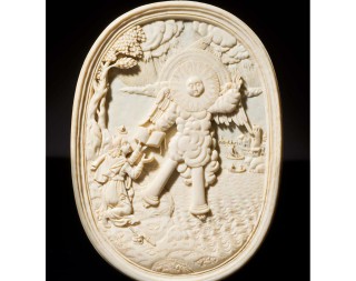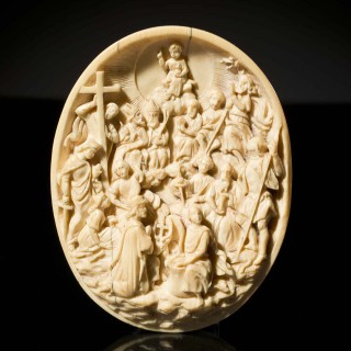 Grande plaque ovale en ivoire sculpté en profondeur représenta ...