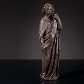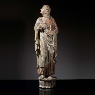 Saint Jean de Calvaire en chêne sculpté etpolychromé, dos ébauché. Debout, la tête