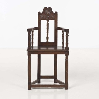 Chaise à bras "en façon ou en forme detallemouze" dite caquetoire en chêne sculpté
