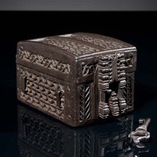 Coffet à mailles en fer forgé, repercé et ciselé à âme en chên ...
