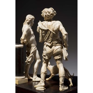 Exceptionnel groupe de la Flagellation en ivoiresculpté avec éléments en bois noirci, fer et fielle
