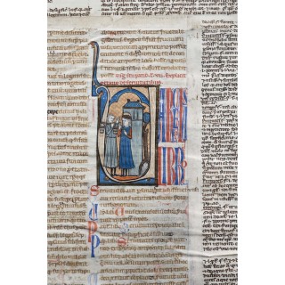 Grande feuille de vélin "Digeste" glosé avec initiale U enlumi ...