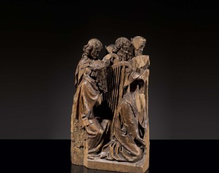 Groupe en noyer sculpté, polychromé et doré représentant le Mi ...