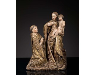 Groupe en noyer sculpté, polychromé et doréreprésentant le Miracle de la Lactation. A droite