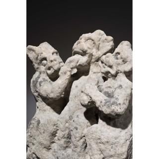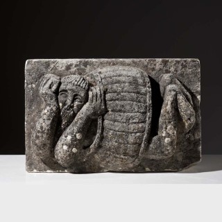 Panneau d'une frise ou d'une métope en pierrecalcaire sculptée en haut relief représentant un