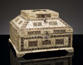 Important coffet en os sculpté, ajouré, gravé et polychromé av ...
