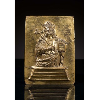 Plaque en bronze ciselé représentant sainteAgathe de Catane d'après le buste reliquaire du