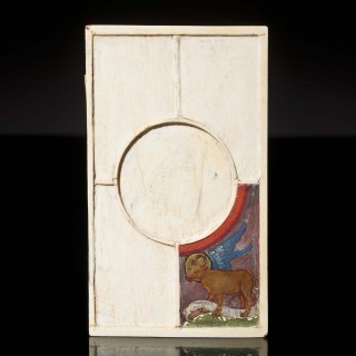 Grande plaque ovale en ivoire sculpté enprofondeur représentant saint Jean dévorant le