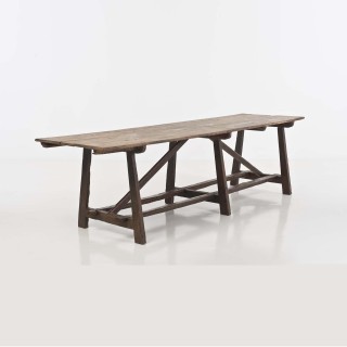 Table de communauté en résineux et noyer Piétement à six pieds ...